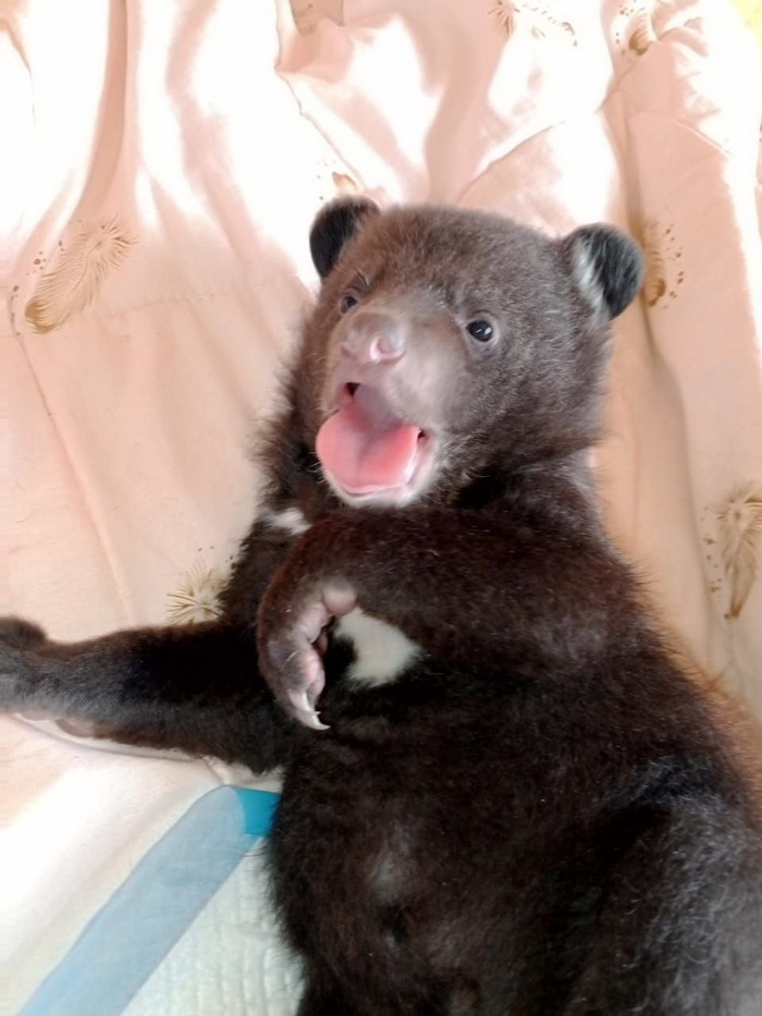 Месячного гималайского медвежонка в Центр "Тигр" (Приморский край) доставили сотрудники Департамента лесного и охотничьего хозяйства Приморского края. Кроху подбросили жителям Тернейского района, которые обратились в охотнадзор.
