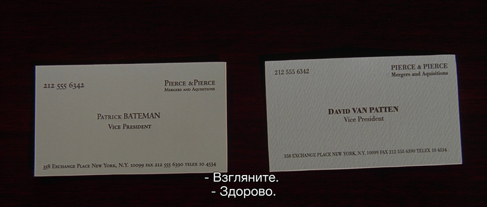 А еще — культовую сцену с визитками (которую миллион раз монтировали / обыгрывали и переделывали)