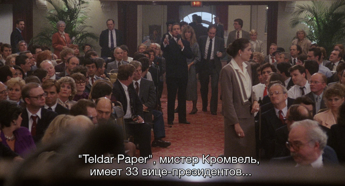 И все они вице-президенты, причем даже их контактные данные совпадают. Возможно, это отсылка к фильму «Уолл стрит», где Гордон Гекко рассказывал, что поглощает компанию, в которой 33 вице-президента, которые непонятно что делают: