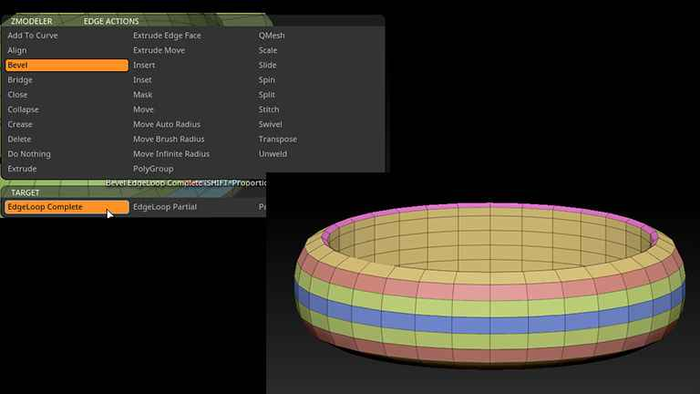 Сделайте Bevel по верхнему и нижнему краю с помощью кисти ZModeler.
