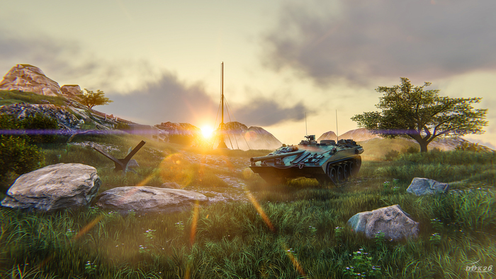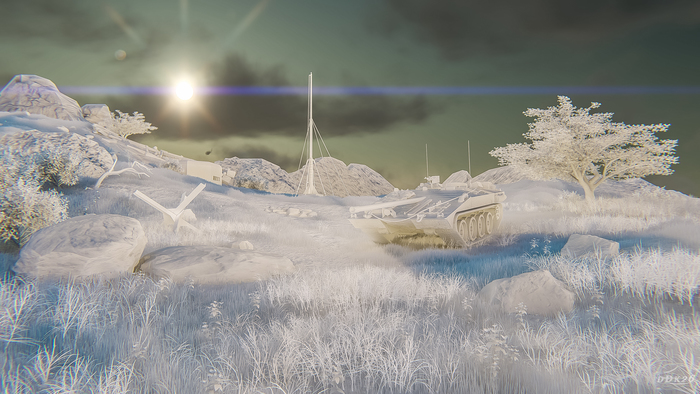 Первый арт-пейзаж в разное время суток с танком в главной роли.