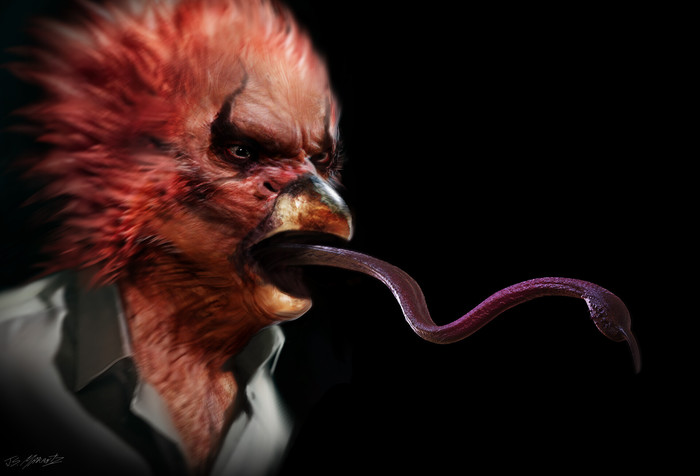 Я много работал как в кино, так и в игровой индустрии. Различий довольно много, но основы те же. В кино на первом этапе дизайна существа я должен зайти настолько далеко, насколько это вообще возможно, чтобы концепт-арт выглядел как кадр из потенциального фильма. В видеоиграх этого делать не нужно, вы начинаете проектировать буквально с силуэта. Сначала нужно определить форму существа, а затем начинается детализация. В кино же вы делаете и то, и другое одновременно, и это немного более стрессовый опыт. Также в кино приходится работать намного быстрее, у вас не всегда есть время на полномасштабное исследование. В видеоиграх вы почти всегда получаете это время.