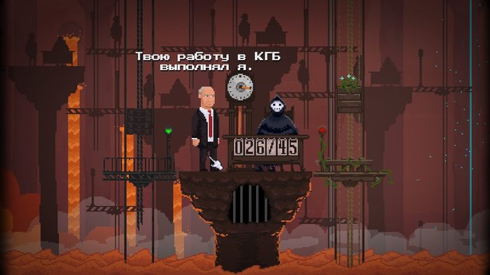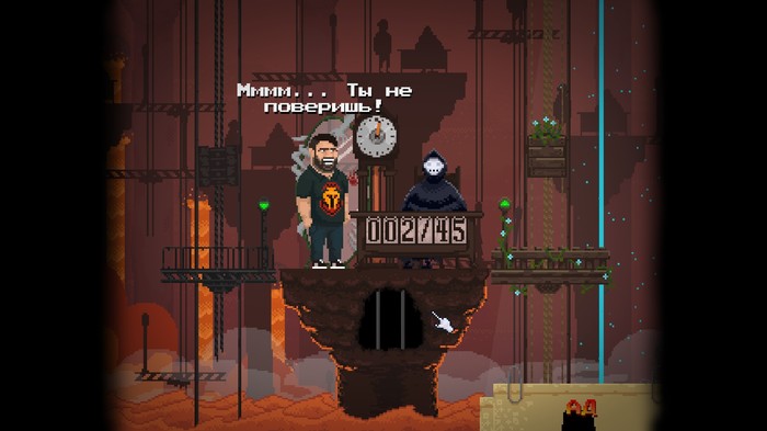 Рефы из поп-культуры я использую только в качестве пасхалок. Персонажа из «Джанго» или локации из Half-Life я бы не назвал референсами, это именно отсылка. Под референсами я воспринимаю нечто строгое: нам что-то нужно, но мы не знаеv, как это изобразить — вот тебе персонаж, давай его обработаем, чтобы нам помогло. А Джанго — это чернокожий парень в синем костюме, который рассекал на лошади. Вот у нас такой же чернокожий парень в костюме, только пиксельный. Такого рода «рефов» у нас полно, конечно.
