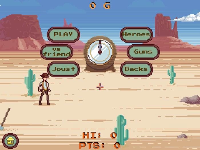 Gun Done — это игра, где вся механика заключается в единовременном нажатии на экран. Я подсмотрел её в игре Ready Steady Go — искал проект попроще и нашёл игру про ковбоев, где весь геймплей состоит в том, чтобы нажать кнопку первым. Подумал: «Блин, механика класс, тема мне нравится, но надо сделать не клон, а кучу разных дуэлей с аналогичной механикой».