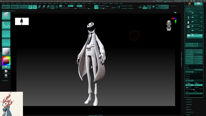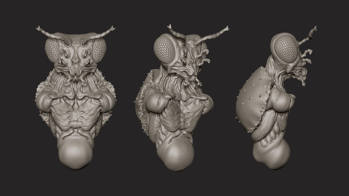 С ним была куча проблем. Для тех кто хорошо скульптит, это было бы легко, но мне, как человеку который занимается в основном полигональным моделированием создать такую форму стоило 2-х дней работы. В какой-то момент, я решил что и в правду лучше это дело заскульптить, но художник внутри меня спит крепким сном.