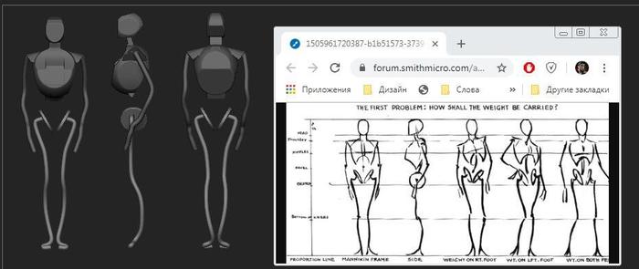 Потом я немного еще курс один глянул и попробовал по нему нарисовать фигуру. Далось довольно просто, узнал о соотношениях типа треугольников между сосками, пупком и всё такое.
