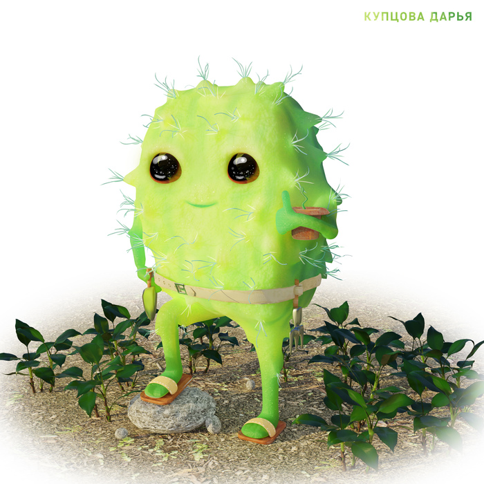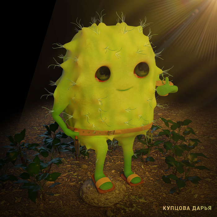 Скучала на работе, решила попробовать себя в персонажном направлении. На глаза попался мой кактус, который стоит на рабочем месте)
