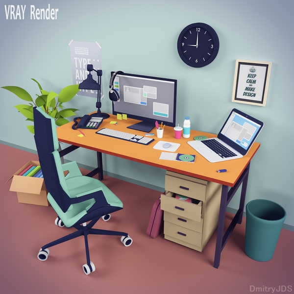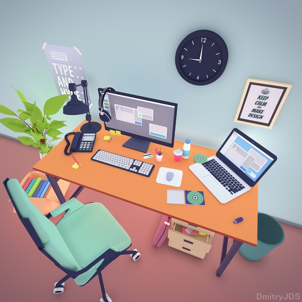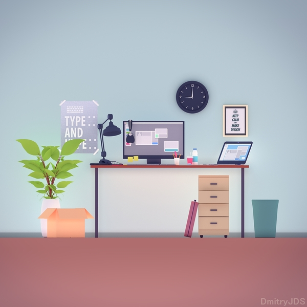 Не так давно сделал небольшую 3d сценку офисного рабочего мета в Blender-е.
