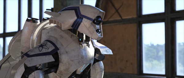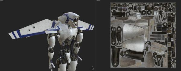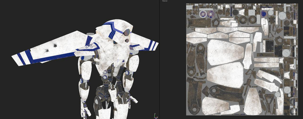 Модель робота была сделана независимым режиссером Михаилом Хижняковым специально для его нового проекта “Энтропия: Завет цивилизации”, задача текстурирования и визуализации была возложена на нашу студию. Основным пожеланием заказчика была предельная реалистичность создаваемого материала: необходимо было учитывать как основной способ передвижения (робот может летать), так и место действия: он появляется в каком-то заброшенном много лет назад здании и должен быть соответствующе загрязнен.