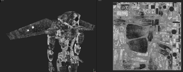 Создание материалов осуществлялось последовательно: сначала были созданы базовые материалы, из которых должен был быть сделан робот, затем на них были нанесены различные повреждения, грязь и запыление. Распределение загрязненных участков осуществлялось , исходя из практических соображений: открытые участки будут сравнительно более чистыми, чем внутренние, на стыках будет чуть больше запыления, грязь на ногах распределена неравномерно, турбина должна оставлять следы копоти и так далее. В то же время, необходимо было избежать другой крайности, когда в погоне за реализмом теряется внешняя привлекательность, что особенно критично для художественного фильма, основным критерием в данном случае выступал эстетический вкус. Такая поэтапность в работе и техника структурирования позволяет вернуться на нужный шаг и сохранить несколько вариантов материалов от чистого до поврежденного/загрязненного, что и требовалось в нашем случае. Все материалы были созданы с высоким уровнем проработки и детализации, что заметно при близком рассмотрении.