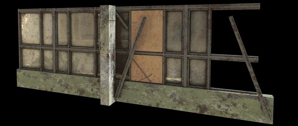 Робот после визуализации монтировался в видеоряд отснятый заказчиком, но в одном из кадров пришлось отказаться от реальной съемки в пользу полностью CG кадра. Для этого, по фотографии, была создана часть стены с окнами аналогичная реально существующей. Для создания материалов стены, так же решено было использовать PBR. Исходя из того, что стена в кадре оказывается в расфокусе, разрешение текстур и детализация были уменьшены, как собственно и время потраченное на создание материала.