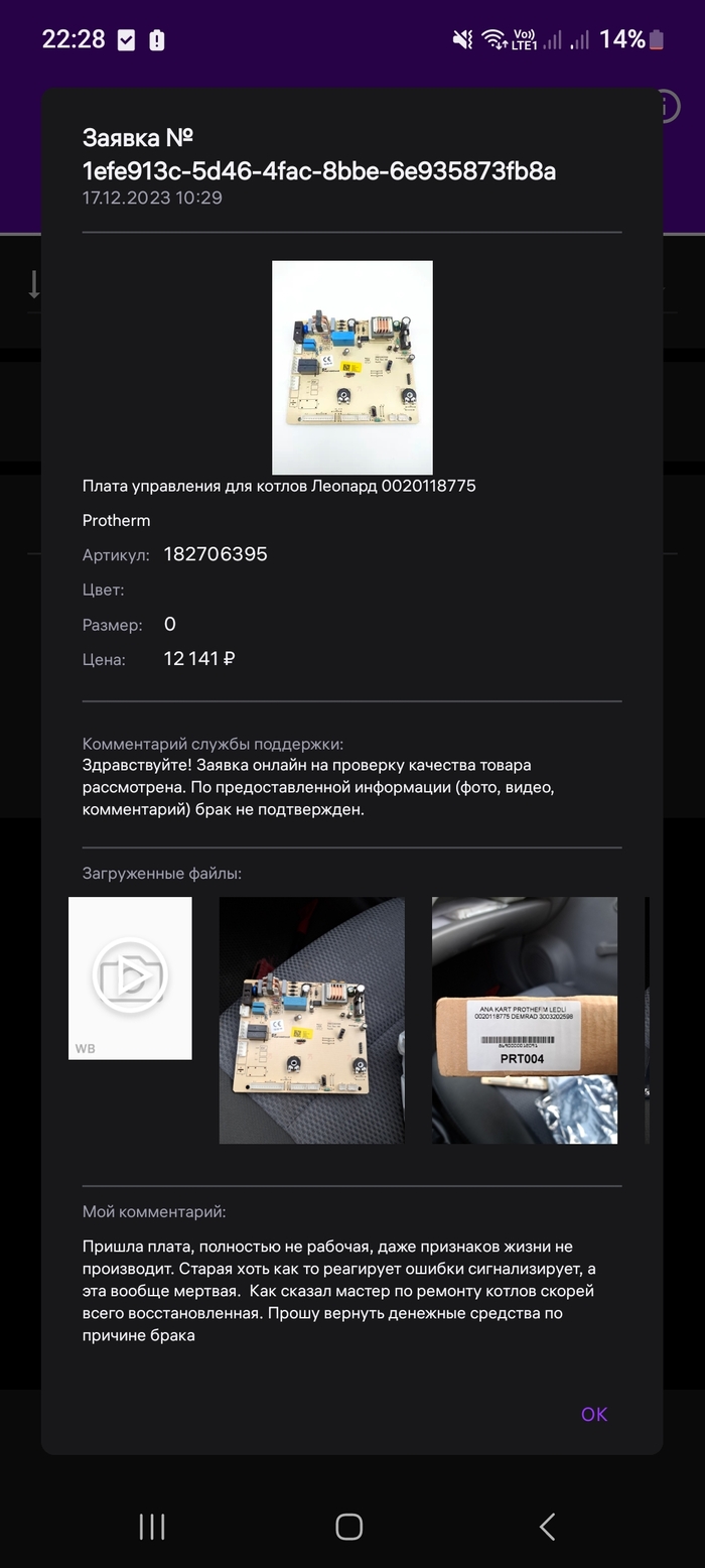 17.12.23 пишу претензию на качество товара, на что получаю ответ: "Мы фото посмотрели, плата работает идите лесом".