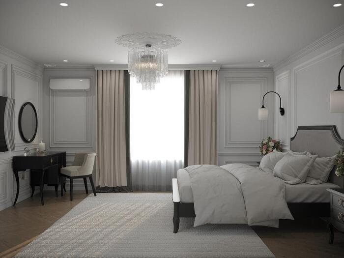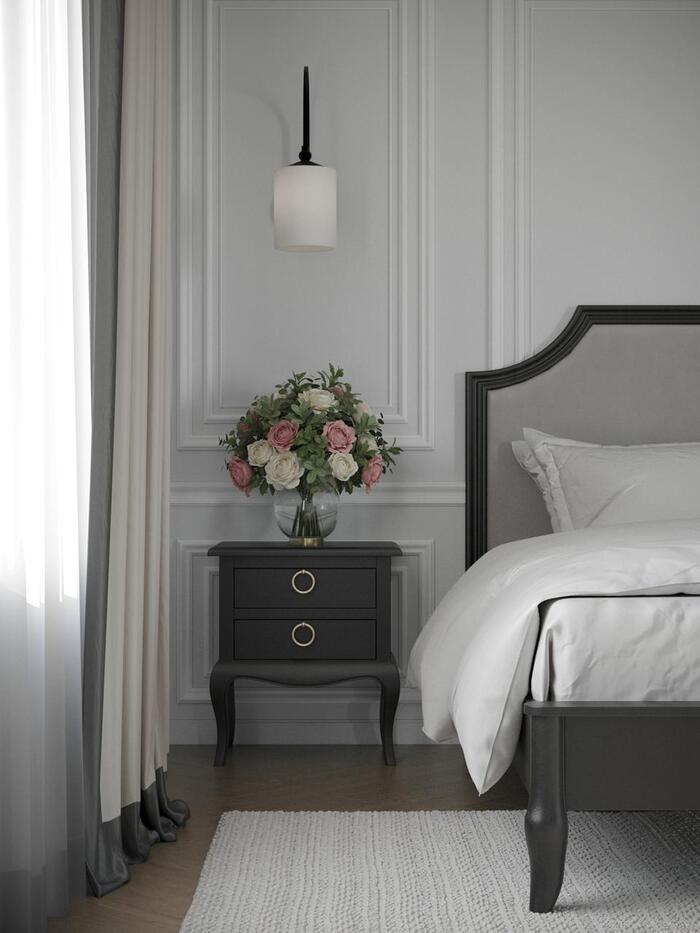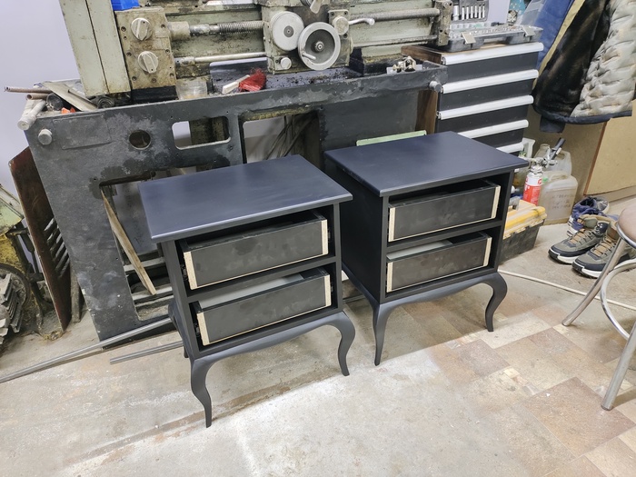 Сделал комплект мебели в спальную в черном цвете. Старался подгонять под референс заказчика, от формы ножек до цвета ткани.
