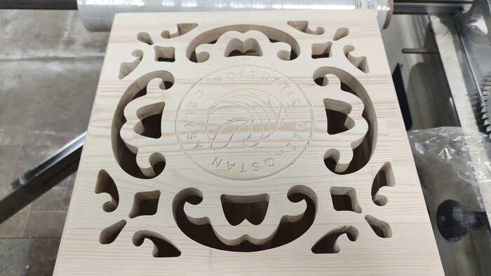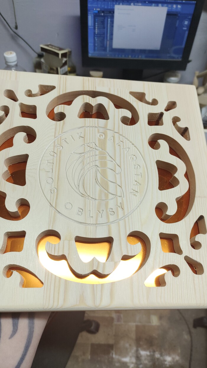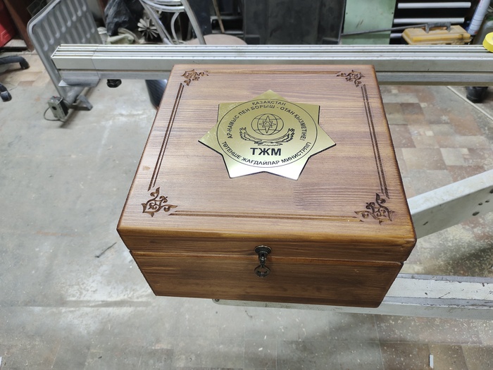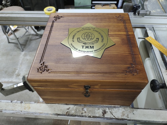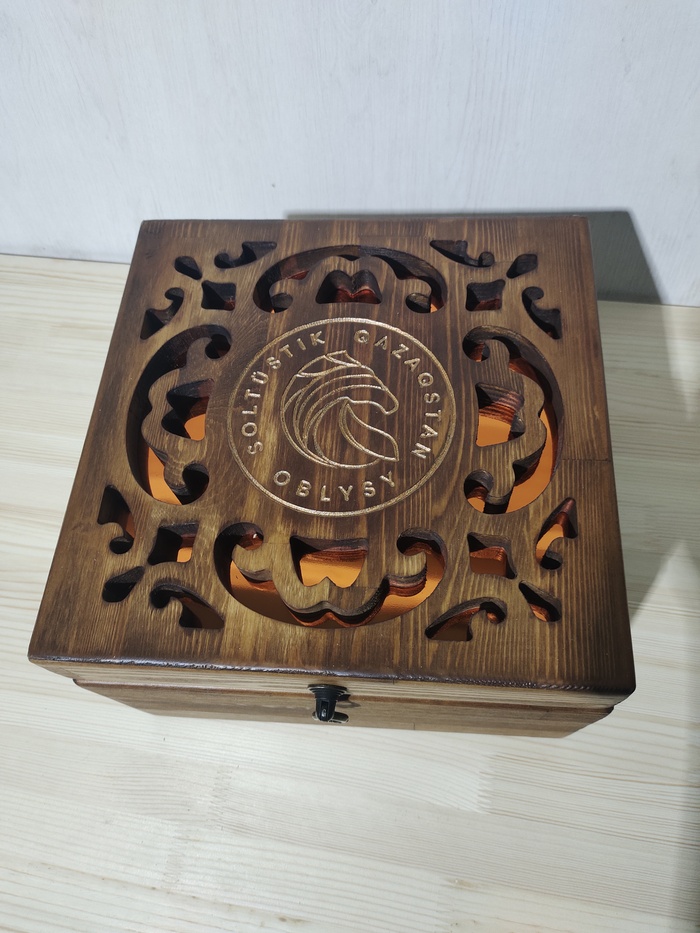 Новогодние шкатулки 340*340. Из сосны и гравировочного пластика. Медь и золото. Примерно по 20шт.