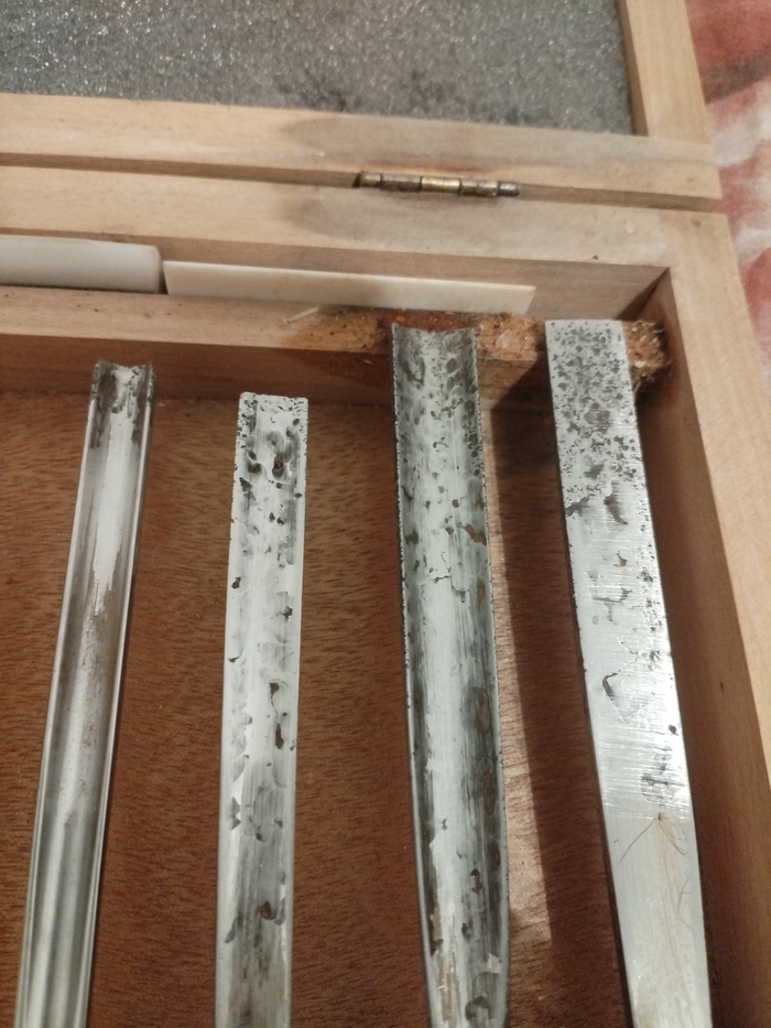К сожалению, когда-то их залило водой и ржавчина пожрала металл. Слегка зачистил наждачкой, но нужно ещё, а потом полировать их все, плюс полностью перетачивать. Но это всё ерунда :).