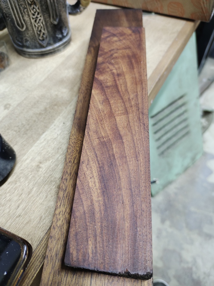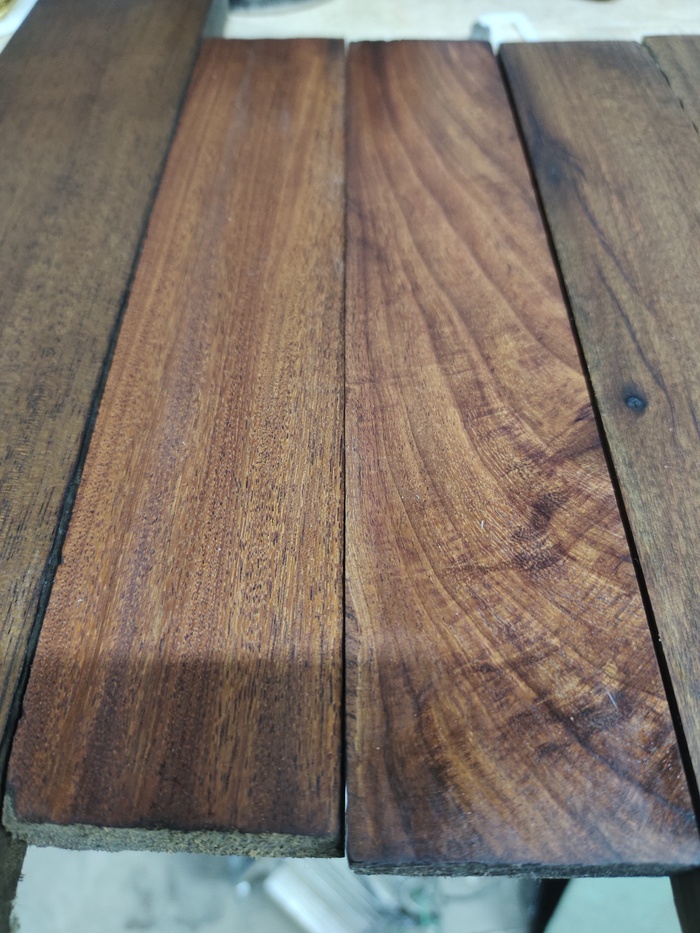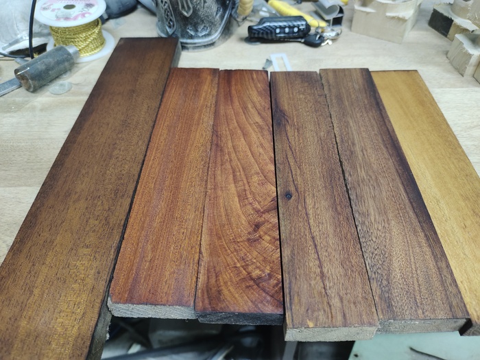 За небольшие деньги приобрел небольшую кучку ценных пород дерева. В основном красное дерево. Точно не скажу породу но очень тяжёлое и твердое, по звуку очень похоже на искусственный камень. Валялось с советских времён на улице под навесом. Уже сделал несколько изделий.