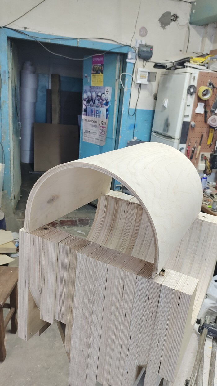 В первый раз пробовал гнуть фанеру по пресс форме. Вышло практически идеально с первого раза. Толщина везде одинаковая и обратно около 6 мм разогнулось, считаю это успехом)). И вполне выдержит человека по прочности.