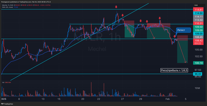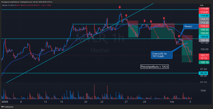 В связи с этим, вчера открыл только одну сделку – шорт Мечела после ретеста уровня 109 руб. По-прежнему сохраняю низкую активность в спекулятивном портфеле, на этой неделе стараюсь работать более точечно.
