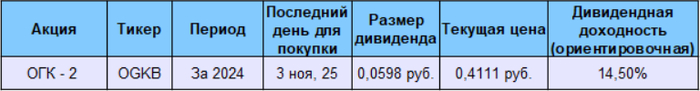 На следующей неделе дивидендов не будет. Ближайшие подтвержденные ожидаются в ноябре. Это ОГК-2 за 2024 год.