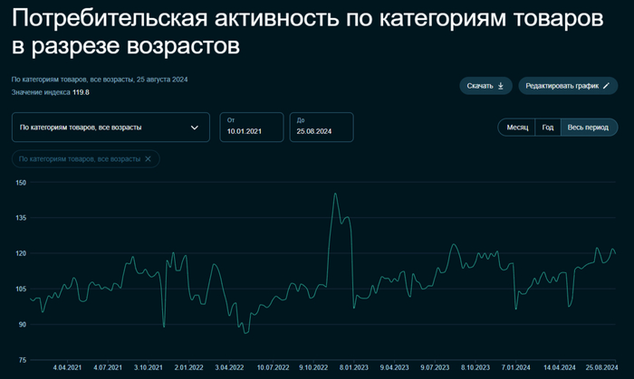 🗣 Данные по производству нефтепродуктов скрывают 15 неделю подряд (скрывают — жди беды), напомню вам, что вес бензина в ИПЦ весомый ~5%. Розничные цены на бензин подорожали за неделю на 0,21% (прошлые недели — 0,22%, 0,28%), дизтопливо на 0,04%. Несмотря на то что Россия продлила запрет на экспорт бензина до конца 2024 г., рост цен продолжился, биржевая цена 92 сейчас находится на максимумах этого года (в период с конца мая по июль включительно запрет отменяли, тогда рост и начался).
