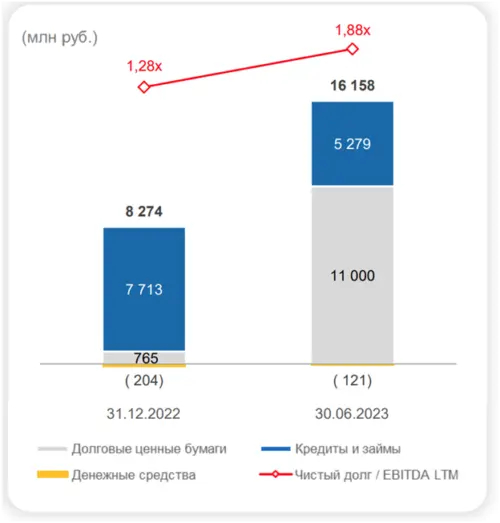 О долге хочется поговорить отдельно, потому что для проспекта ЕвроТранс показывает 2 варианта его учета: без лизинга, и с ним. Без – все красиво: 1,9 чистый долг/EBITDA LTM