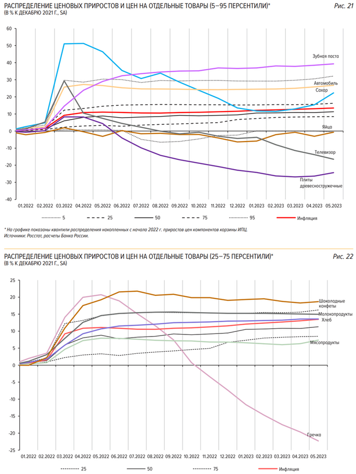 А теперь смотрим на картинку. Есть инфляция? Да. К декабрю 2021. По отдельным товарным группам. А если взять к маю 2022, то уже совершенно другая ситуация. Так понятнее?