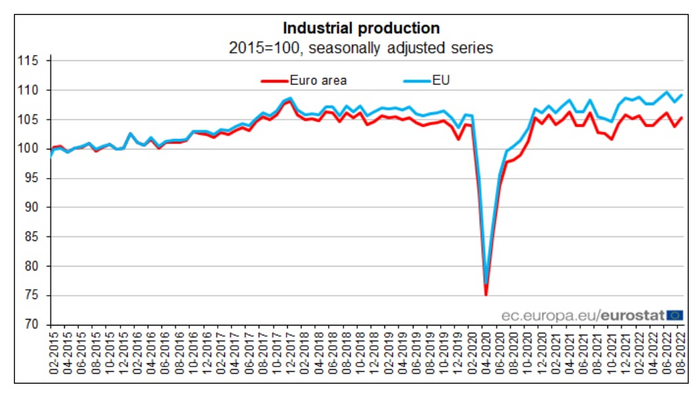 В августе 2022 года экспорт товаров из Еврозоны составил 231,1 млрд.евро, что на 24% больше показателей августа 2021 (186,4 млрд.). Импорт - 282,1 млрд.евро против 183,6 млрд. (53,6% рост). Таким образом имеем дефицит торгового баланса в размере 50,9 млрд.евро. Встаем, хлопаем!