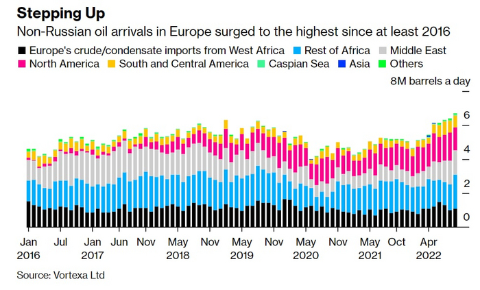 Одновременно товарный импорт из России оказался выше уровней конца зимы в десяти государствах. Это Словения (в 4,4 раза), Хорватия (в 2,7 раза), Чехия (в 2 раза), Мальта (88%), Испания (46%), Бельгия (39%), Люксембург (22%), Кипр (13%), Эстония (11%) и Болгария (10%).