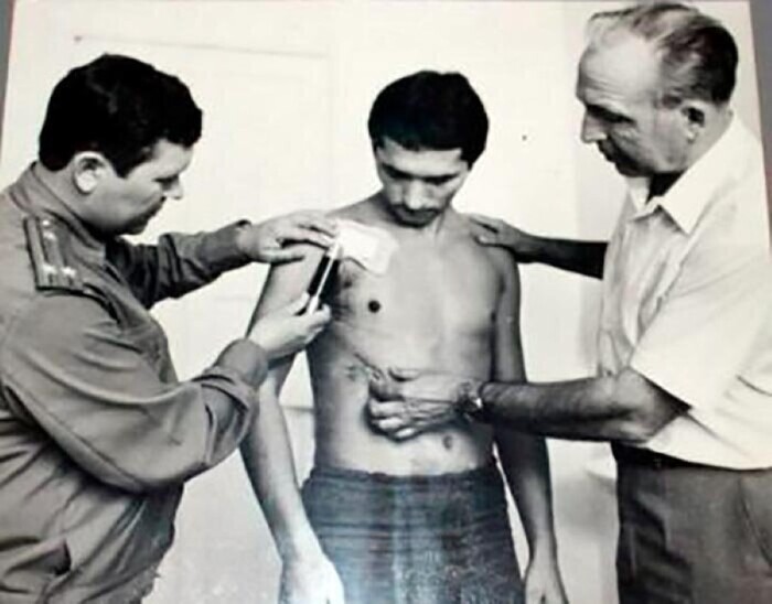 Так в августе 1986 года Виталий Грабовенко попал в Душанбинский окружной госпиталь погранвойск СССР, Здесь солдата детально обследовали, никаких серьезных нарушений в организме не нашли. Рану зашили. Правда, смущал рентгеновский снимок, где на самом краю виднелось темное пятно. Успокоил рентгенолог: это ручка от аппарата попала в кадр.