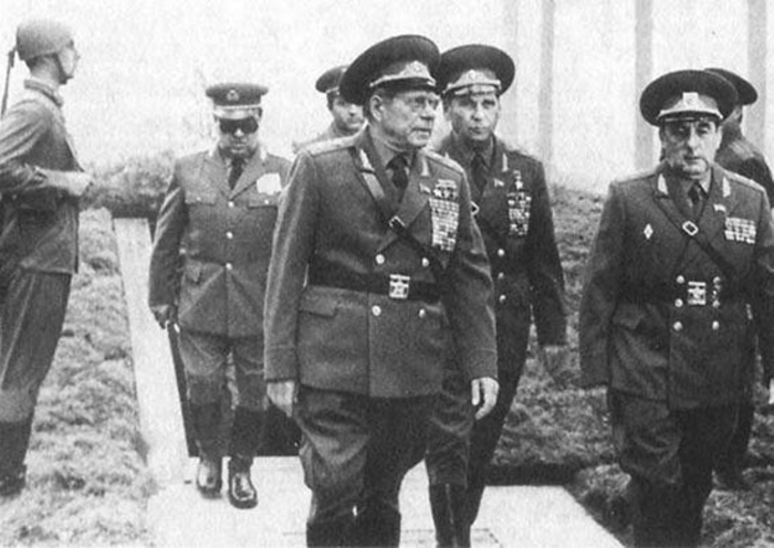 Министр обороны СССР Д.Ф. Устинов (слева) и начальник Генштаба ВС СССР Н.В. Огарков на самых крупных в истории страны учениях "Запад-81", сентябрь 1981 года