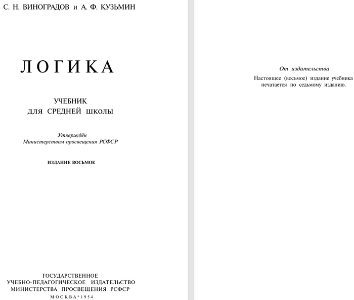 Речь идёт об учебниках по логике (авторство Уёмов А. И., Виноградов С.Н., Богуславский В.М.) В оригинале книги были изданы в 1954 году.