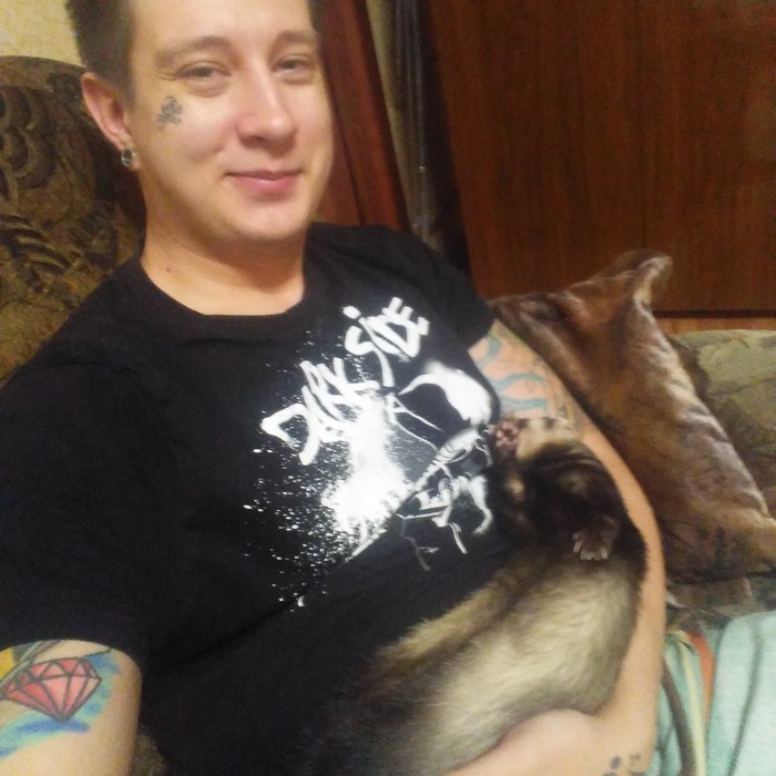 На фото ниже Шлецик, мой первый хорёк, он очень любил кушать с рук)