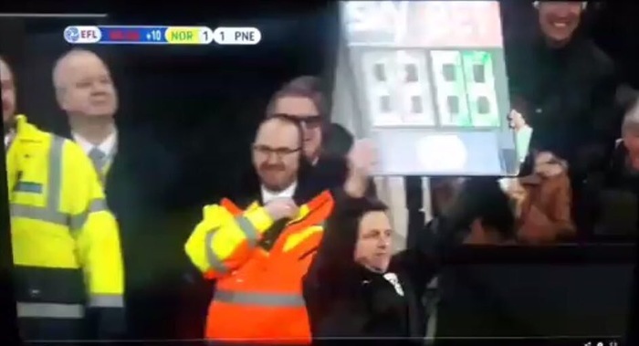 Но болельщик «Норвича» Дэвид Торнхилл предложил помощь. Ему пришлось снять клубную атрибутику и освоить электронное табло. Дэвид помог закончить матч, поработав в концовке резервным арбитром. Парень поднял табло, показав, что к основному времени добавлено 10 минут.