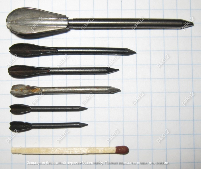 Сначала я просто нарисовал стрелу с оперением, исходя из того, что размах оперения был равен длине стабилизаторов, а длину пули принял за десять калибров ее тела.
