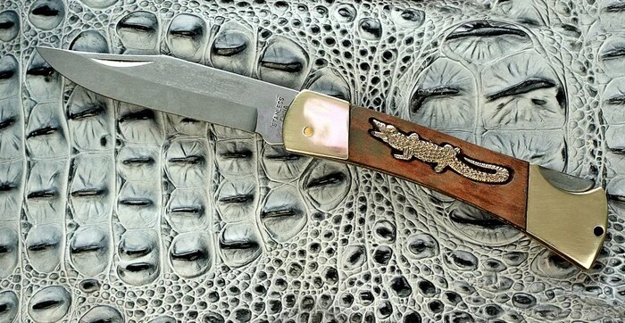 Крайне популярны были всевозможные копии Бака-110. Особенно - с крокодильчиком. Не знаю, как у вас, дорогие читатели, а в нашей среде нож без крокодильчика был так себе... Средненьким.