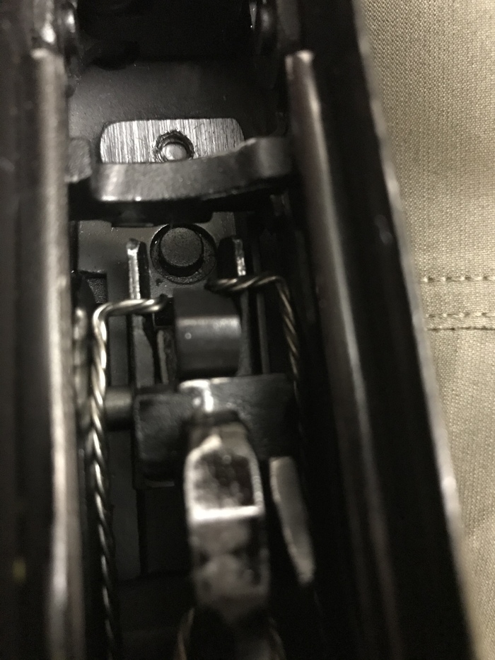 Приклад вверх, длина ремня подогнана под вскидывание заранее, ствол смотрит вниз. При ходьбе ничего не мешает, не цепляется. Можно быстро поднять карабин для выстрела.