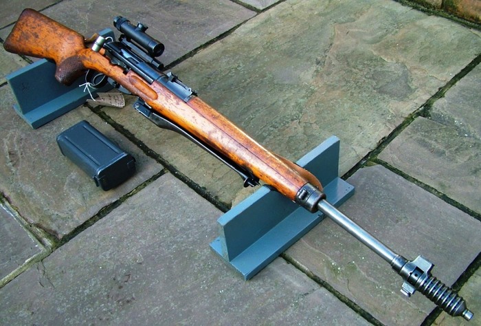 Что же остается простым смертным жителям Туманного Альбиона? Кроме длинноствольного оружия, о котором немного позже, существует в Великобритании нечто, чего нет больше нигде. Это что-то среднее по параметрам и закону - длинноствольное оружие, по функции - пистолет, а в литературном переводе я бы назвал это нечто - “Британский пистолет” (несмотря на то, что по-английски это называется British Longarm). Дело в том, что закон гласит: сам ствол оружия должен быть не менее 30 см, а общая длина - не менее 60 см. Это и дало начало “Британскому Пистолету”. По сути дела, это однозарядный спортивный пистолет в калибре .22LR олимпийского класса, предназначенный для стрельбы по мишеням на 50 метров. Только у “Британского пистолета” ствол сделан длиннее, чем у нормальных моделей этого класса, а к рамке пистолета в районе рукоятки с каждой стороны приделаны по два стальных прута, которые торчат назад параллельно стволу, только в обратную сторону. Таким способом достигается общая длина оружия в 60 см. Извращение - так считают многие британские стрелки, однако на данный момент это единственное “нечто”, что хоть немного заменяет нормальное оружие для этого вида спорта.