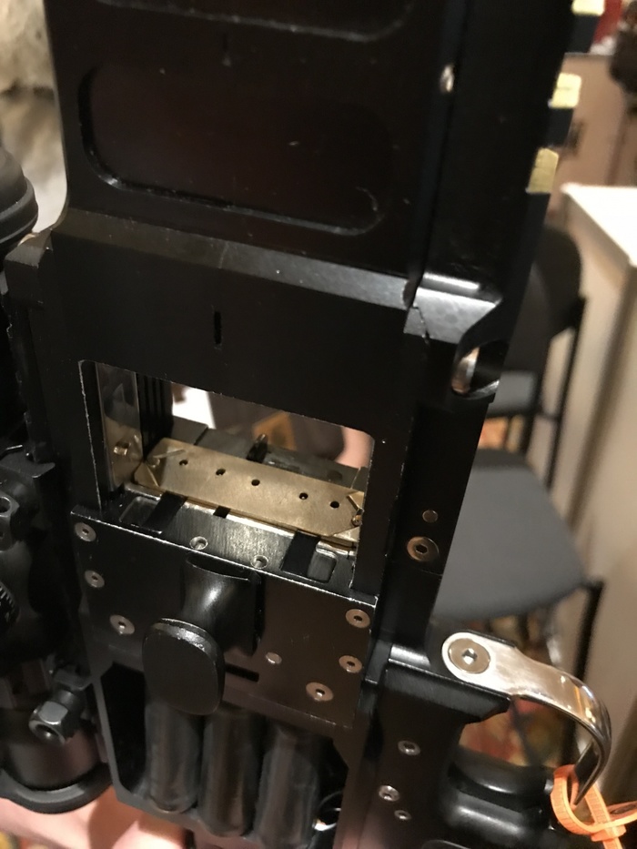 Черный буффер гораздо тяжелее и так как он расчитан на буфферную трубку карабина (carbine buffer tube, как у М4), а я использую его в винтовочной (rifle buffer tube - как у М16, длиннее) - мне пришлось добавить 23 четвертака и кусок более тяжелой возвратной пружины. Выглядит ущербно, но отлично смягчает отдачу и продлевает срок жизни всех движущихся частей.