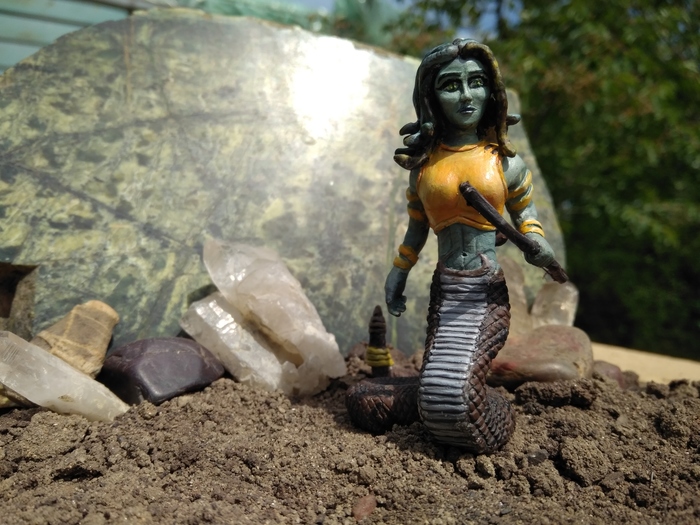 Из дворца величественно выползла нага. Рослая, крепкая девушка; вместо ног у нее был длинный змеиный хвост, а в каждой из сильных шести рук - по мечу или сабле. Следом за ней показалась еще одна, и еще, и еще... Воинство змеедев быстро заполняло пространство перед дворцом.