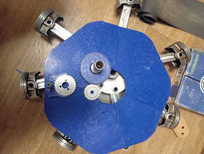 Ещё на Indian scout 741 такой был,да и много где ещё.Если кто то скажет -так у звездообразных моторов ведь кулачковые шайбы в качестве распредвала?!да,но это и минус,так как фазы неравномерные по цилиндрам получаются,да и нехочу как все,интереснее применить 7 отдельных распредвалов,в виде 7 отдельных кулачков.Так даже проще фазы на каждом цилиндре выставить одинаково будет