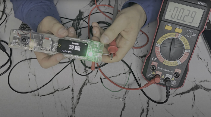 Безопасность контрольки: В режиме измерения сопротивления, контролька выдаёт кратковременный импульс с силой тока всего в 290 мкА, что в разы ниже даже её дорогостоящих конкурентов.