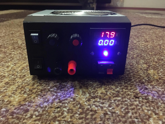 Регулирование скорости и останов происходит при помощи энкодера. Вращение - регулировка, нажатие - стоп.