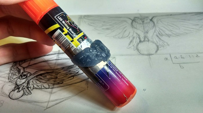 Кстати, на картинке выше, стержень был недостаточно измельчен, и в итоге смесь клея и графита никак не хотела выдавливаться и нормально смешиваться.