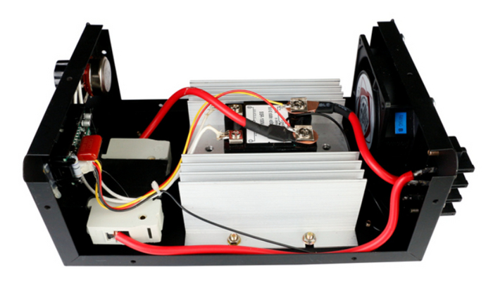 Для охлаждения на задней стенке корпуса установлен вентилятор. Регулятор собран в металлическом корпусе, на передней панели стоит автомат 25-50 А, в зависимости от ваших потребностей.