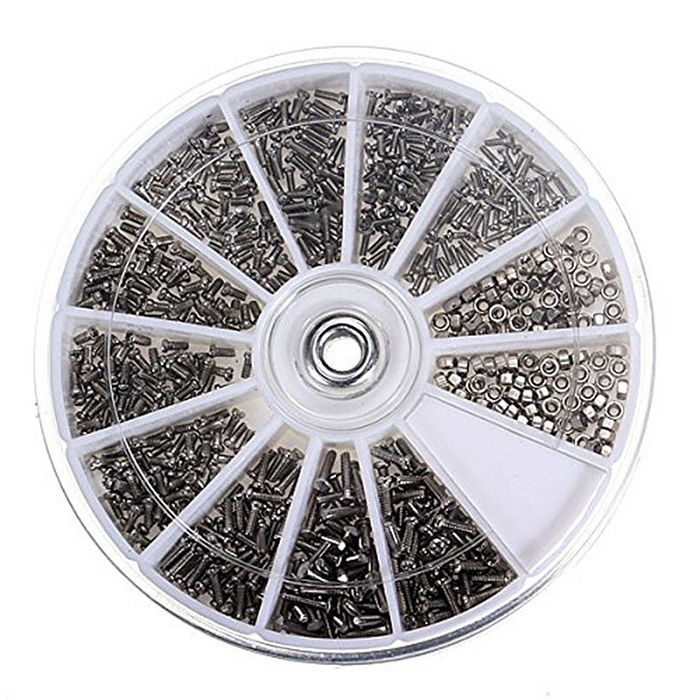В набор входят винты и гайки размером от М1.2 до М1.6, выполненные из нержавеющей стали.