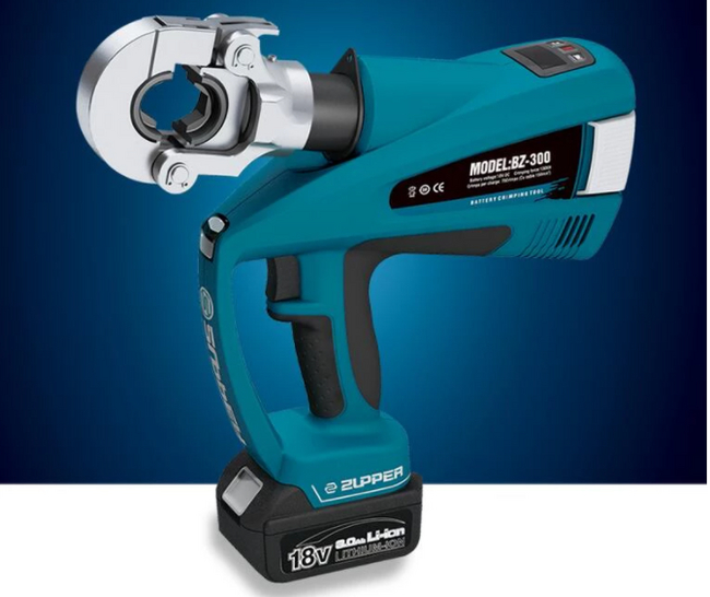 Инструмент работает от съемного аккумулятора емкостью 3000 мАч, обеспечивает силу обжима в 60KN и может использоваться с кабелями сечением от 16 до 300 мм2.