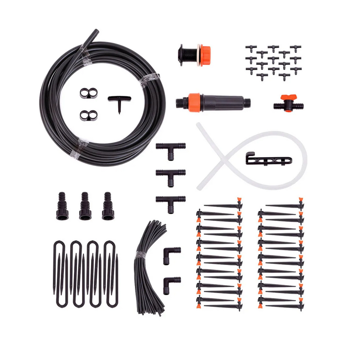 Эта система капельного полива предназначена для обеспечения равномерного и экономичного орошения до 30 растений.