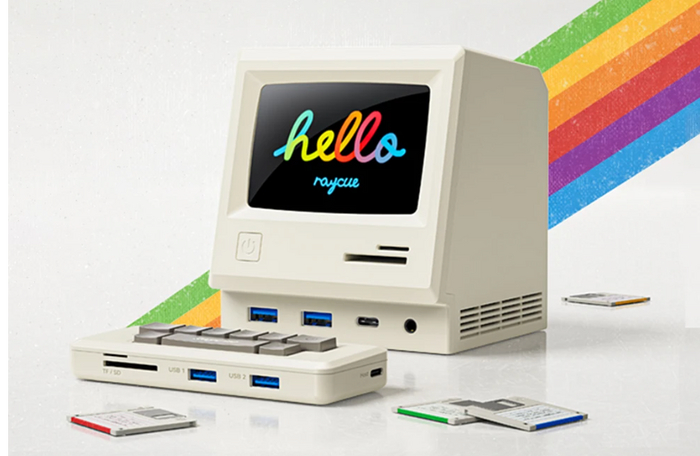 Для тех, кто любит ретро стиль, есть док станция в виде мини-компьютера с USB Hub на 14 портов, Bluetooth колонкой и фоторамкой. Эта уникальная док станция сочетает в себе функции хаба для подключения множества устройств, качественного звука и возможности демонстрации любимых фотографий.