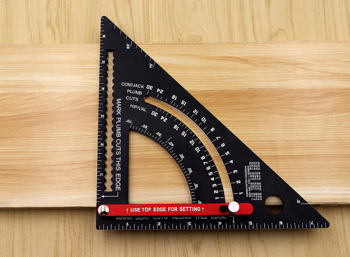 Плотницкий угольник имеет простую конструкцию с регулируемым упором, с помощью которого можно надёжно фиксировать необходимый угол.