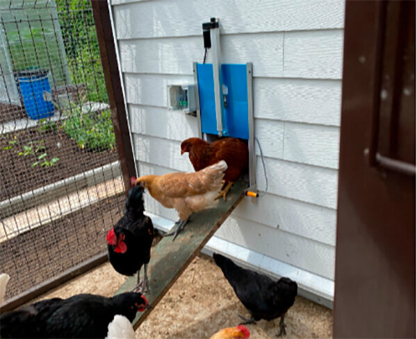 Скорость подъема двери достаточно высока - до 5 мм/с, что позволяет курятам свободно выходить и входить в курятник в любое время.